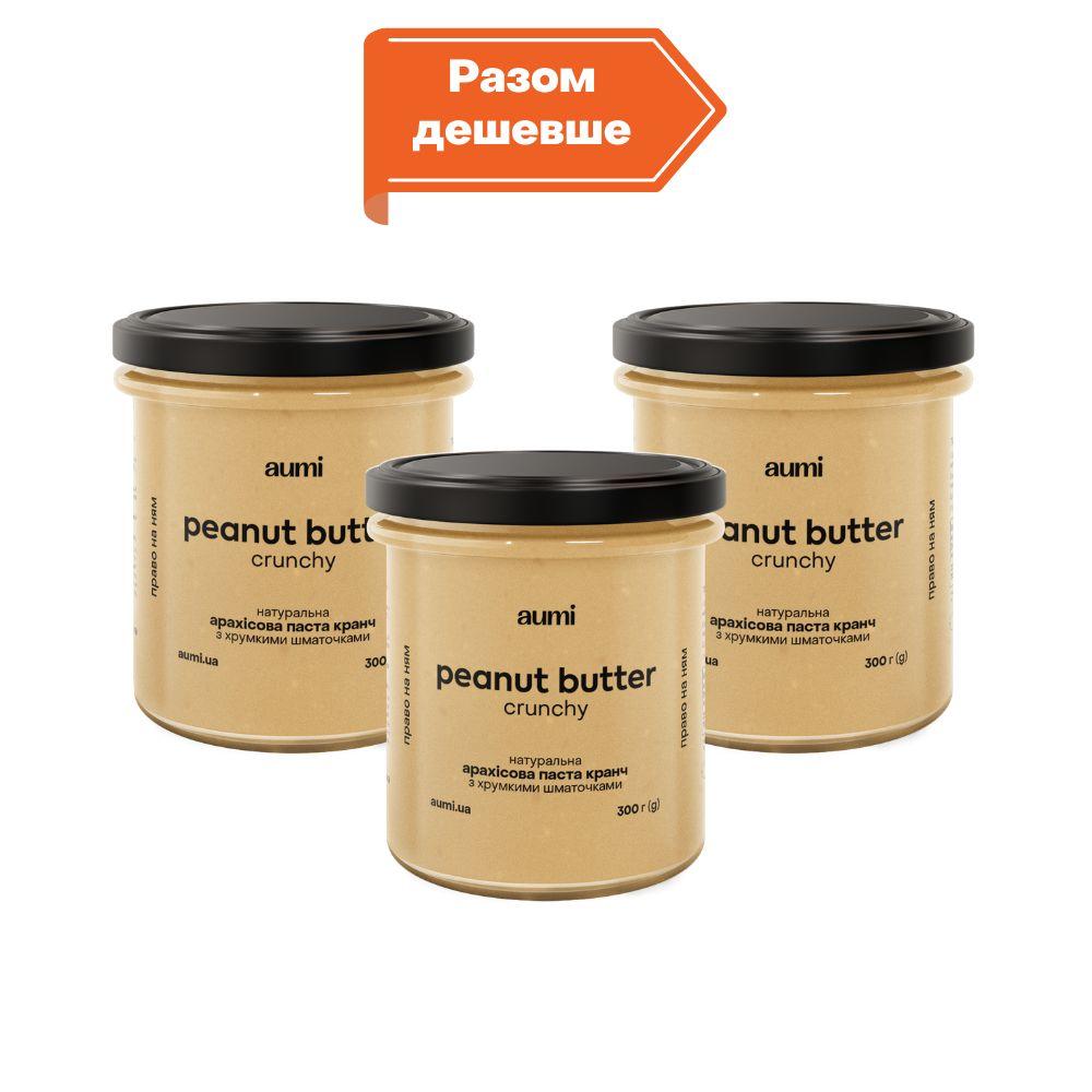 Чим арахісова паста кранч AUMi (з хрумкими шматочками) відрізняється від інших арахісових паст кранч: